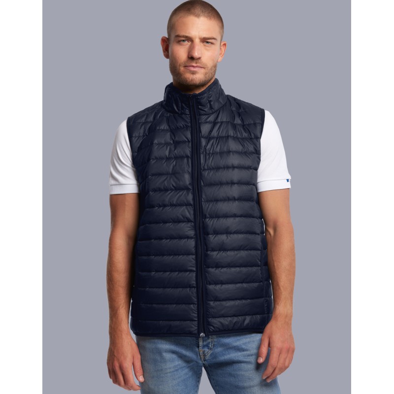 Doudoune sans manches Homme Made in France, fabriquée dans l'Oise. Coupe droite. Extérieur en polyester dont 30% de polyester recyclé, garnissage vegan en polyester. Matelassage fin. Coupe droite. Poches mains passepoilées. 2 poches intérieures plaquées. Zip central YKK imperméable.