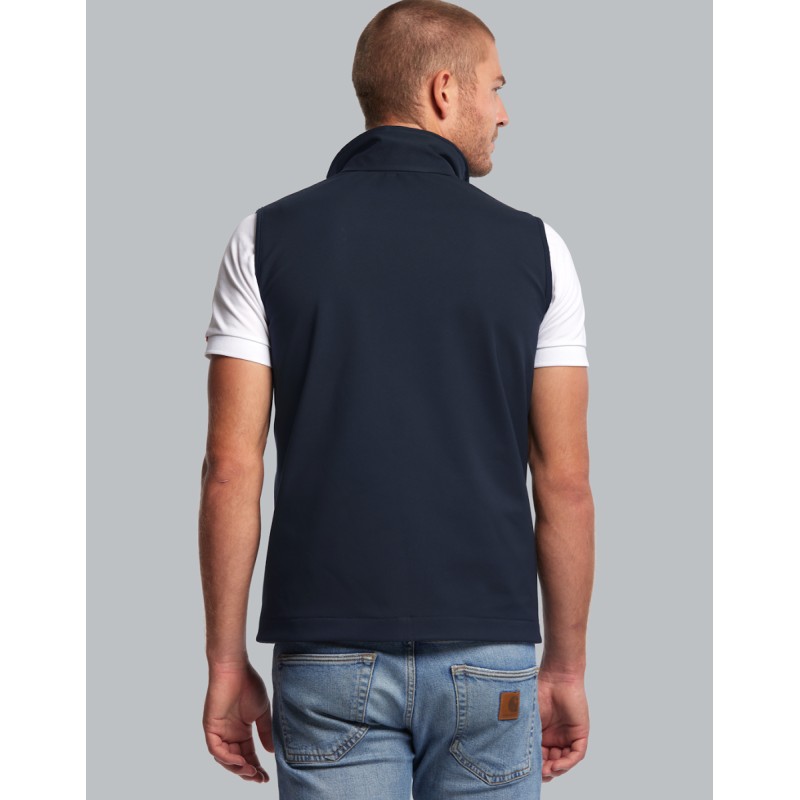 Bodywarmer softshell Homme Made in France en polyester recyclé. Confectionné dans l'Oise, ce bodywarmer est composé à 38% de polyester recyclé. Composition globale : 94% Polyester 6% Elasthanne. Softshell imperméable et respirante 3 couches avec membrane en TPU. Colonne d'eau 10000/3000 WP/BR. 2 poches mains passepoilées. 2 poches intérieures plaquées. Intérieur en micropolaire. ZIp central YKK imperméable. Coupe droite