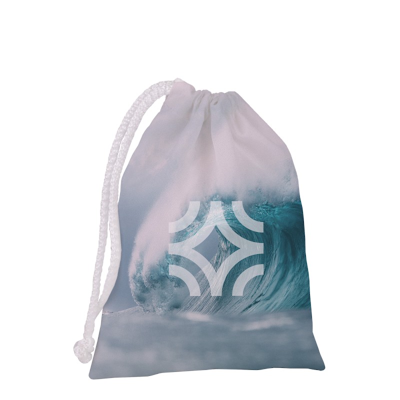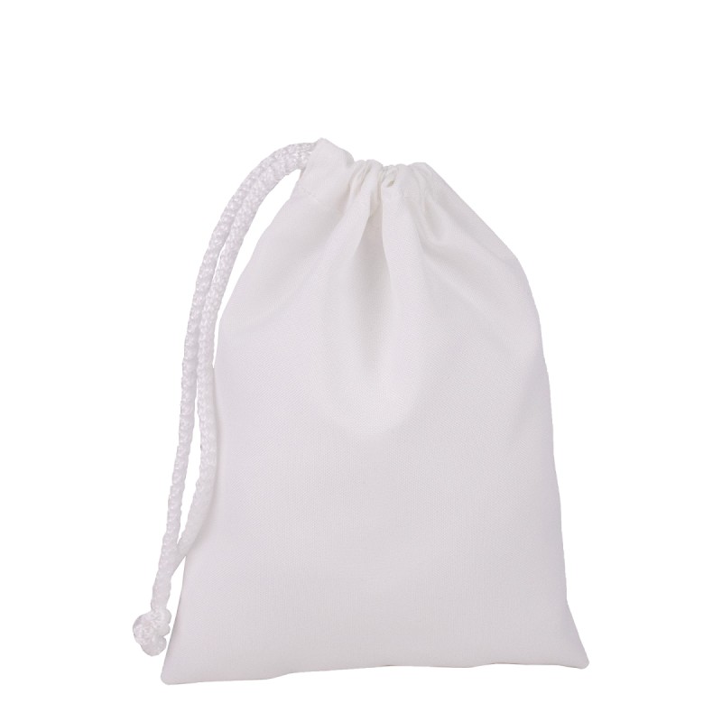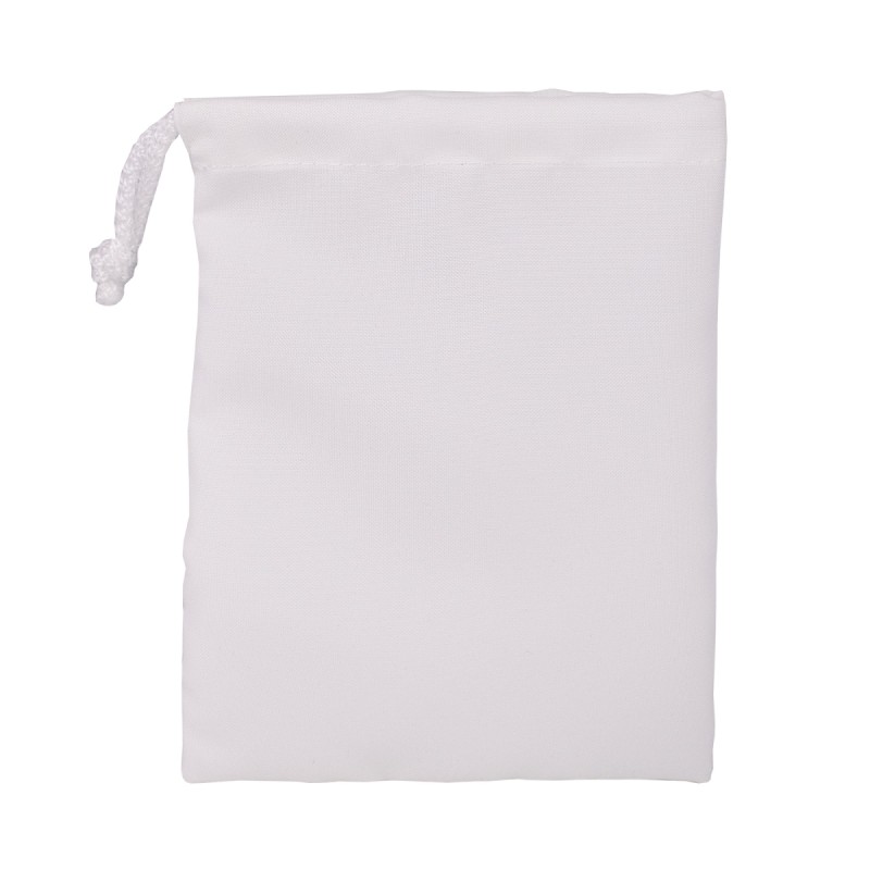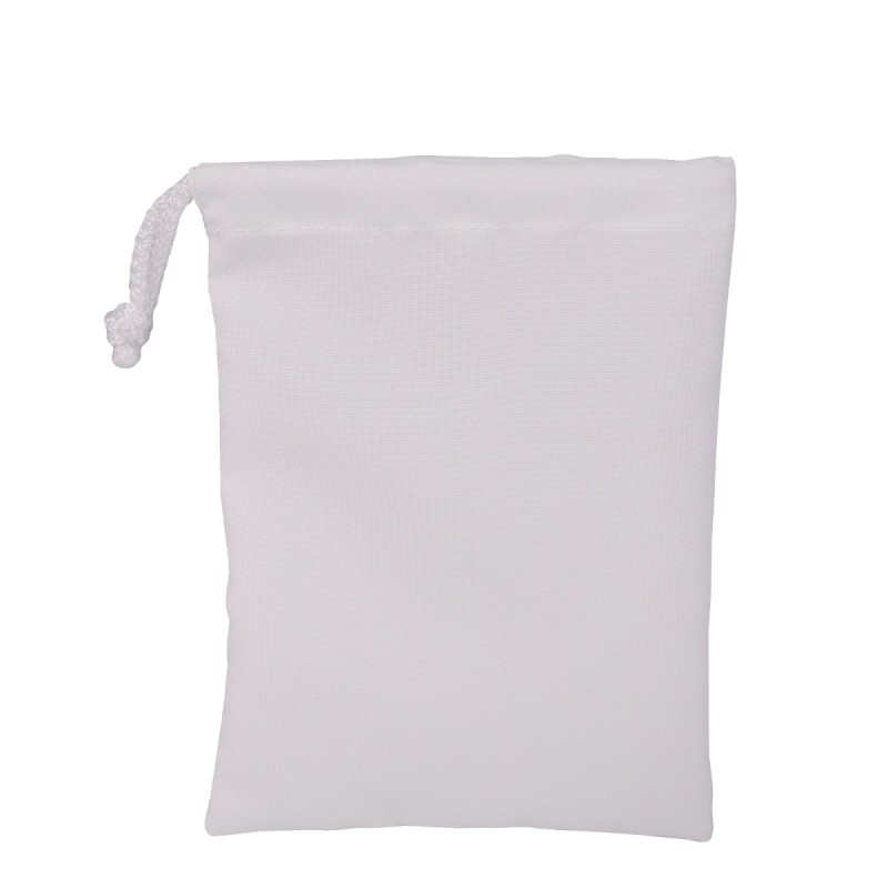 Petit pochon en polyester 150 gr/m2 blanc sublimé. Fabriqué à base de tissu certifié GRS