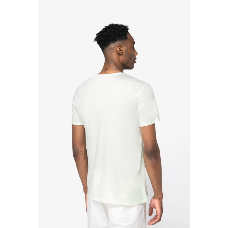 100% coton biologique. Fabriqué au Portugal. Coton peigné. Coupe ajustée. Produit lavé aux enzymes. Aspect délavé. Encolure avec bande de propreté intérieure en matière principale. Renfort épaule. Ourlet double surpiqûre bas de manches et bas de vêtement. Coutures latérales. Vêtement teint en pièce après montage : les couleurs peuvent varier d'un produit à l'autre. Ce produit est susceptible de déteindre au contact avec des surfaces ou vêtements clairs.