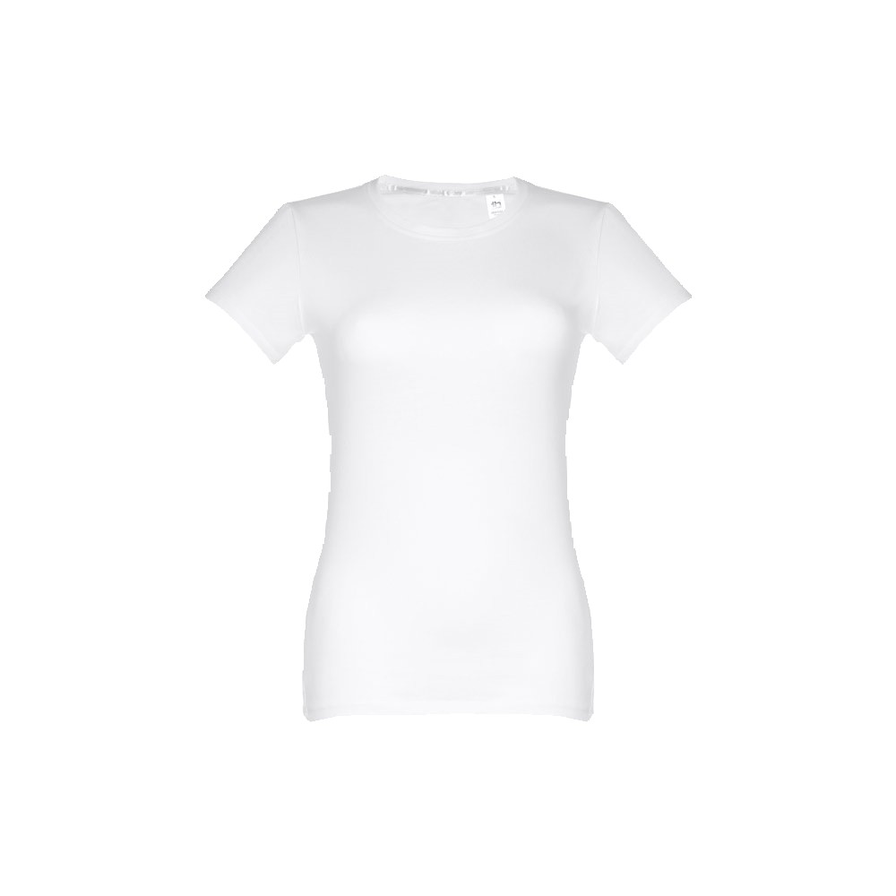 T-shirt ceinturé pour femme en maille jersey 100% coton (190 g/m²) avec fil de coton cardé. Contient un col en jersey fin avec un ruban de propreté en satin. Pièce coupée et cousue avec double surpiqûre sur les manches et le bas. Tailles: S, M, L, XL, XXL