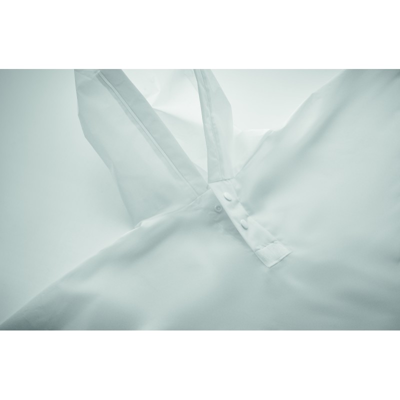 Vêtement de pluie en PEVA pour enfants (2-5 ans) avec capuche. Fermeture par bouton-pression.