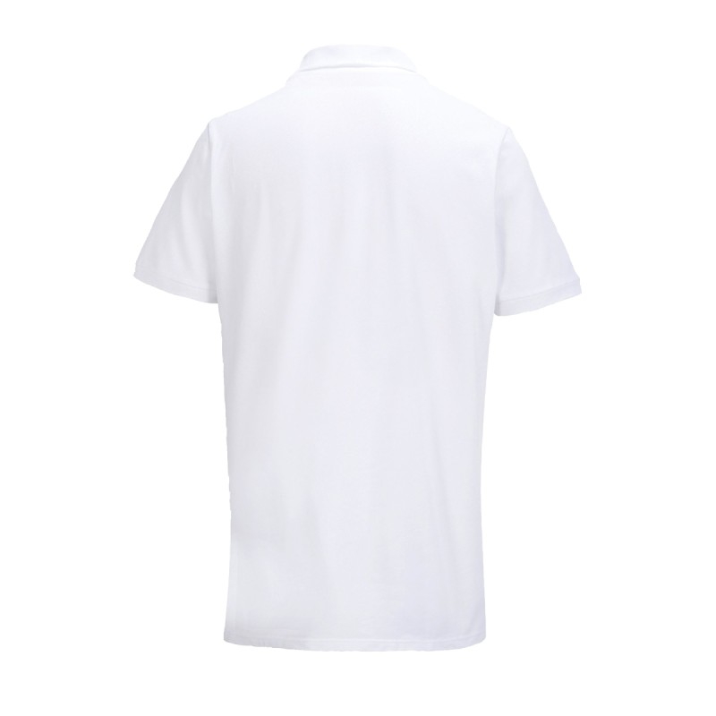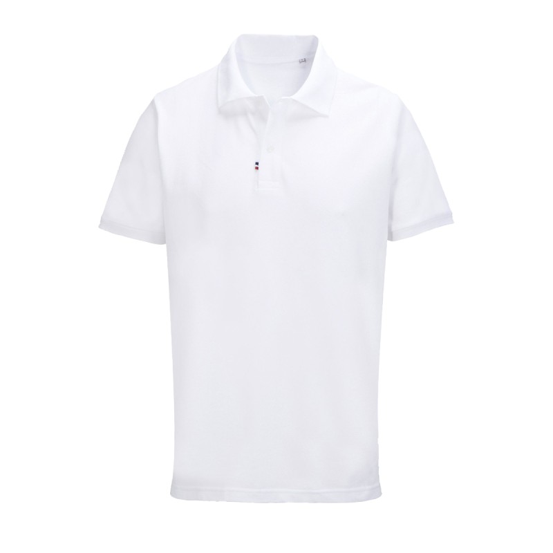Col en côte avec bande de propreté Patte renforcée avec 2 boutons Manches courtes avec bord côte Dos rallongé (+2cm) et fentes côtés Coupé cousu Bouton de rechange sur couture intérieure côté Coupe confortable