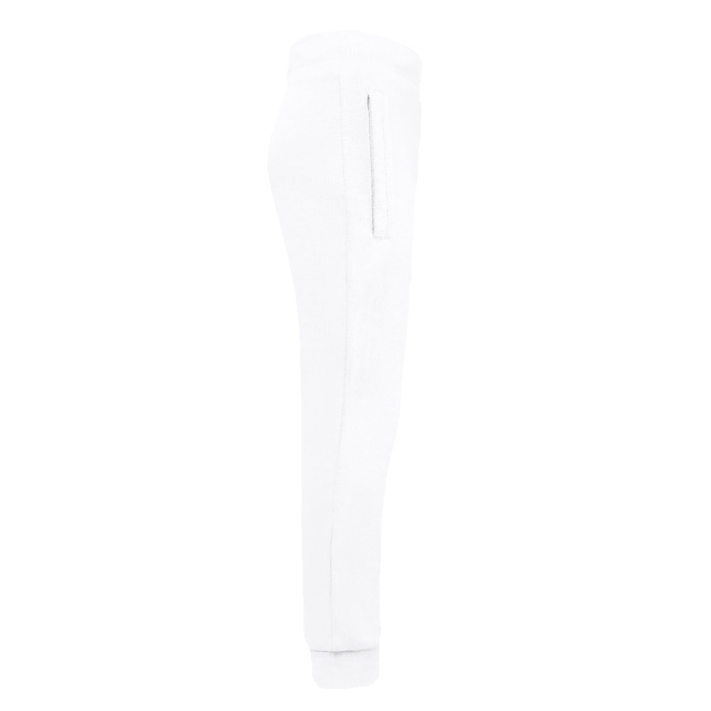 Pantalon de survêtement pour enfant traité à l'enzyme (unisexe) en French Terry (70 % de coton issu de pratiques agricoles durables) et 30 % de polyester recyclé (300 g/m²). Taille élastique en rib 1x1 avec cordons de serrage de la même couleur que le pantalon et deux poches latérales avec fermetures éclair invisibles et coutures renforcées. Le bas du pantalon de survêtement est également en rib 1x1. Tailles: 4, 6, 8, 10, 12