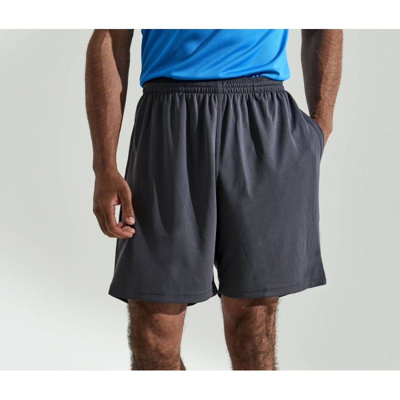Taille élastiquée. Intérieur filet. 100% polyester Neoteric™, matière légère texturée avec propriétés respirantes et facilitant l'évaporation de la transpiration. UPF 30+ UV