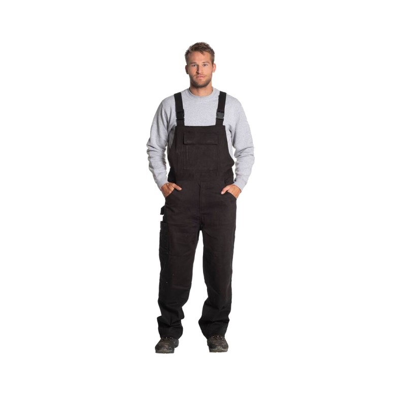 Salopette multi-poches et déperlante. Bretelles élastiques réglables. 7 poches. Genoux renforcés. Ourlet à rallonge.