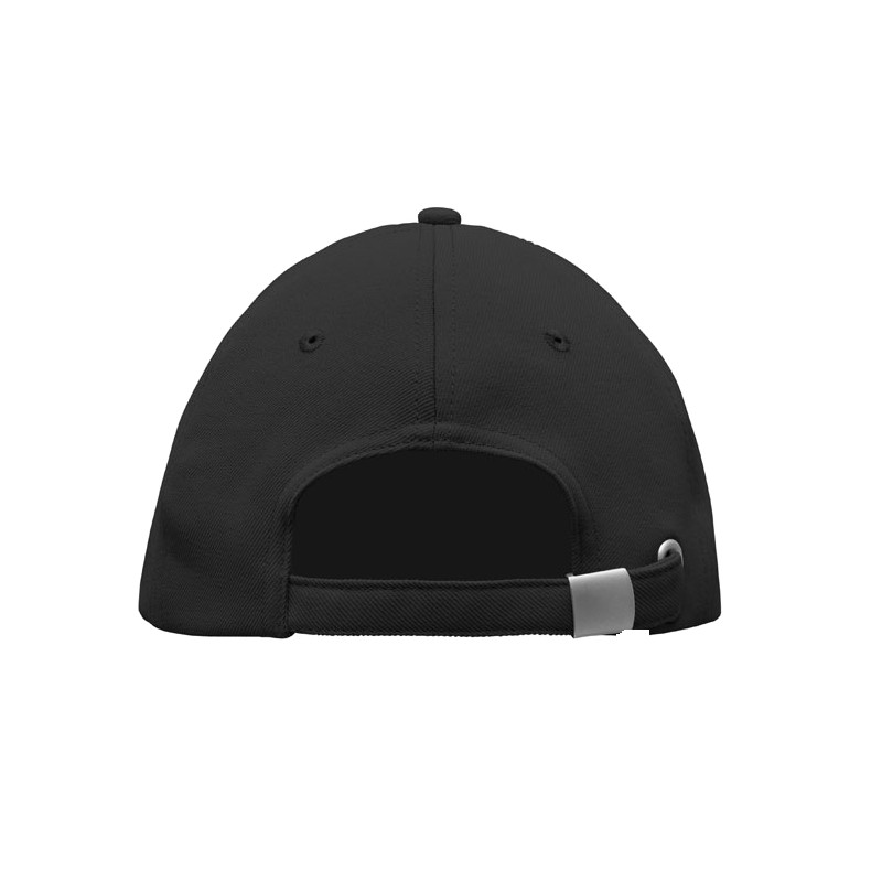 Casquette de baseball à 5 pans en polyester Rpet 210 gr/m² avec boucle en acier argenté. 4 œillets brodés de couleur assortie. Taille 7 1/4.