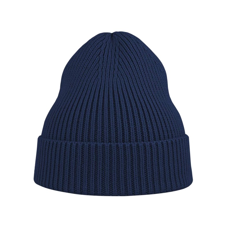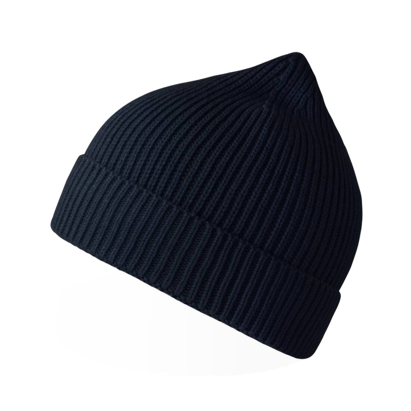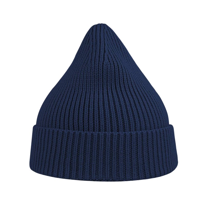 Bonnet en tricot, maille fine 1x1. Avec rabat.