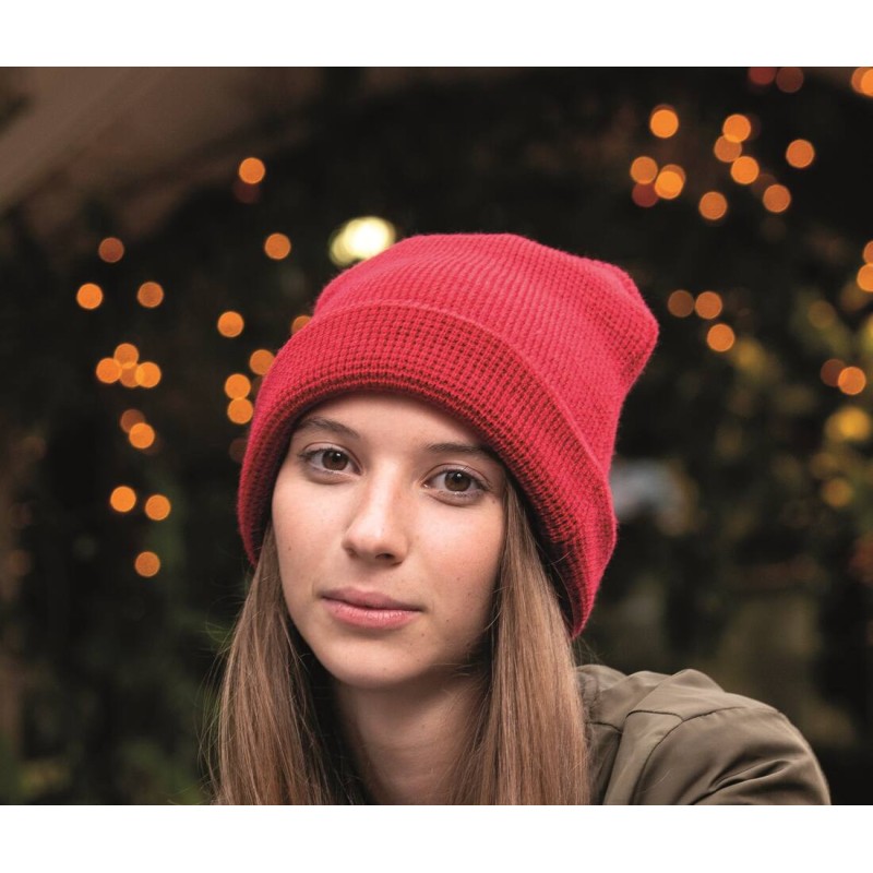Bonnet doublé. Jauge 6. 4 coutures sur le haut du bonnet.