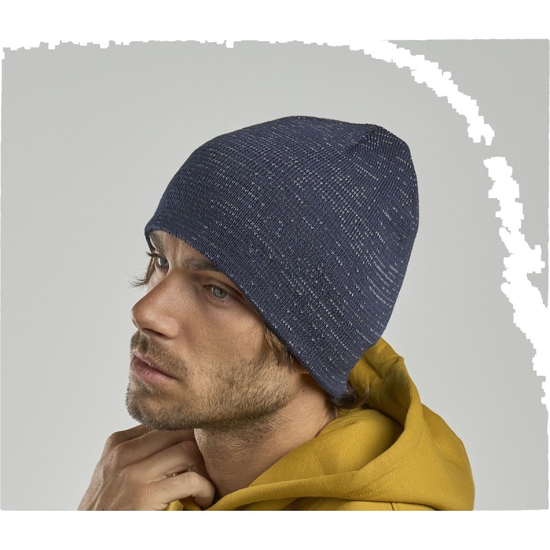 Fibres réfléchissantes. Parfait pour les sportifs quand la nuit tombe et qu'il fait froid. Fabriqué grâce au recyclage des bouteilles plastiques.