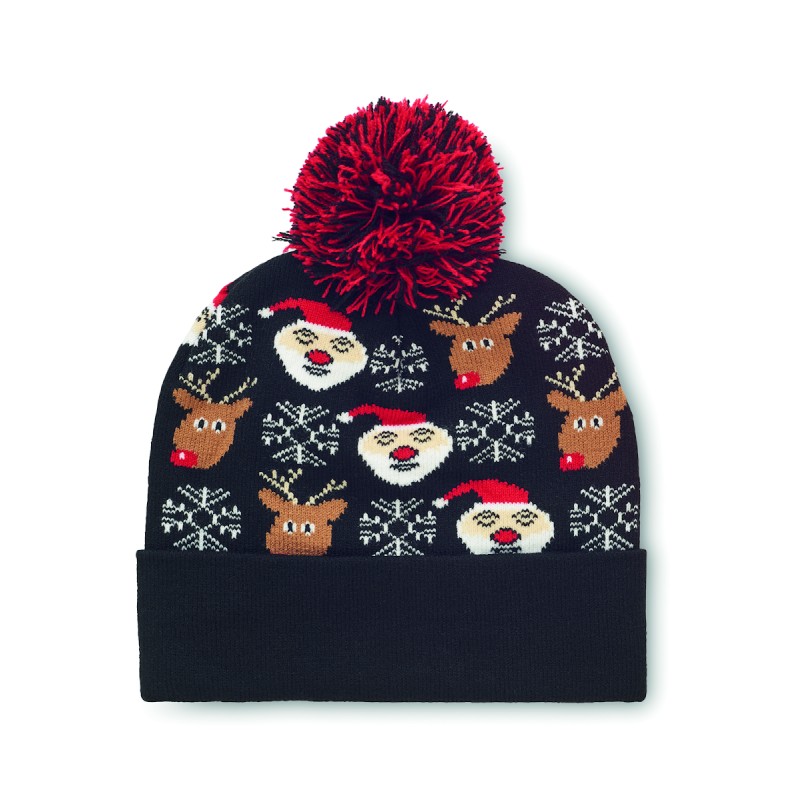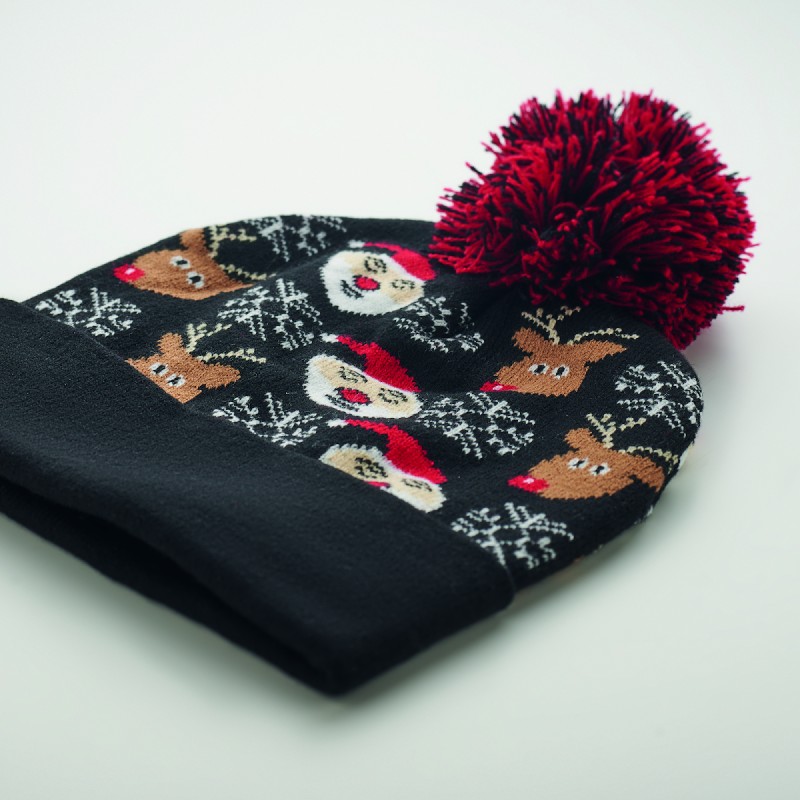 Bonnet de Noël tricoté avec revers et pompon en acrylique doux et extensible.