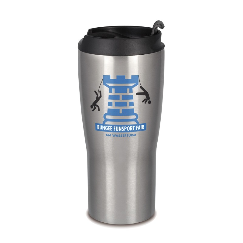 Gobelet isotherme étanche à double paroi en acier inoxydable. Colisage imposé : veuillez en tenir compte dans le choix des quantités. Livré en boîte individuelle cartonnée.