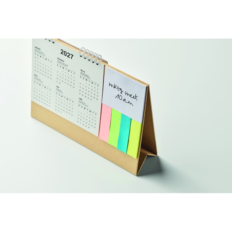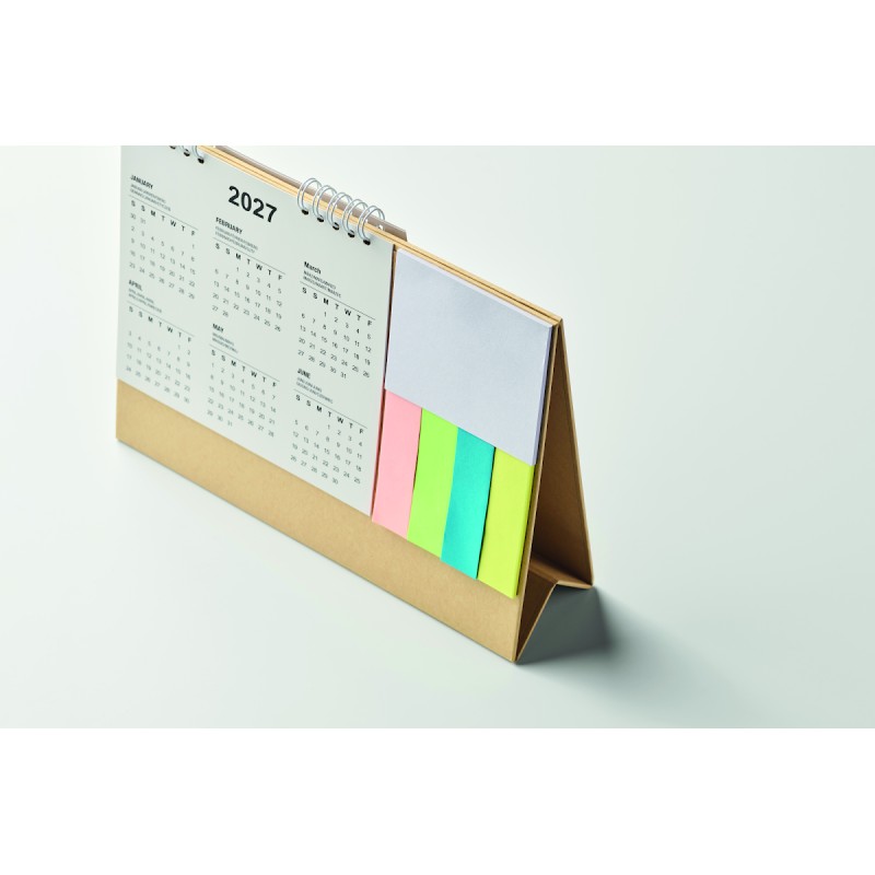 Calendrier de bureau de 4 ans avec notes autocollantes en 3 parties et mémopad dans un support en carton. FSC®-certified | FSC MIX, P8.6, FSC-C213206