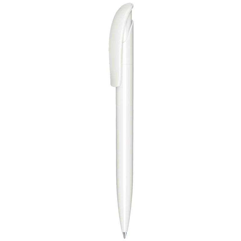 Stylo à bille rétractable avec corps et clip en plastique opaque brillant.