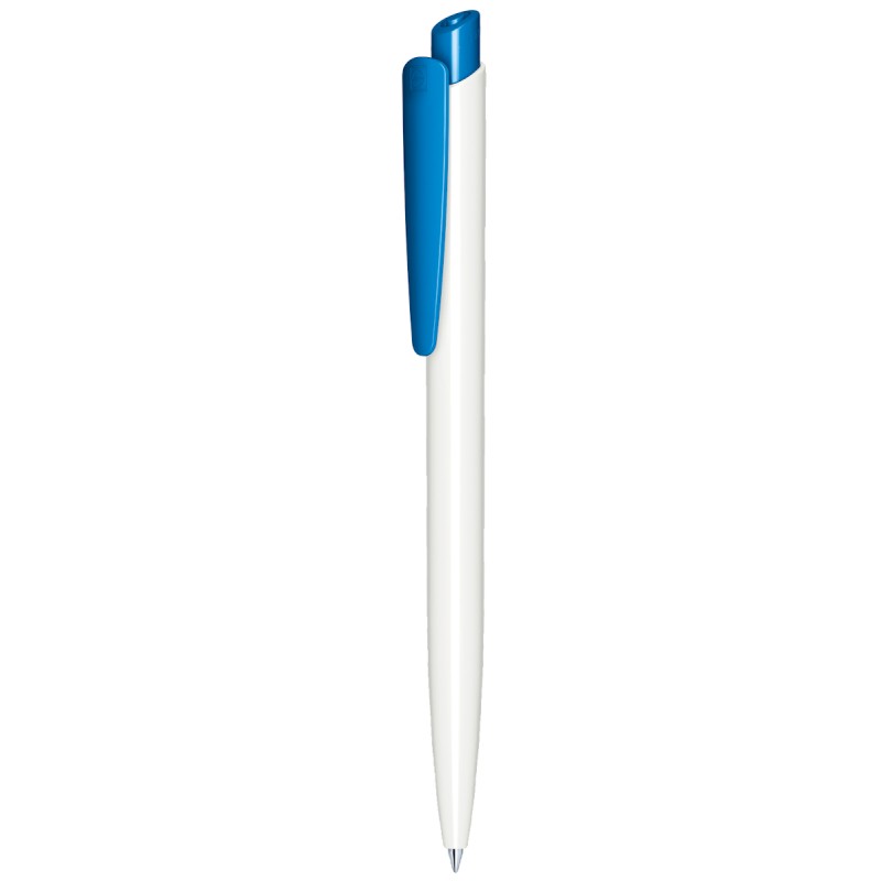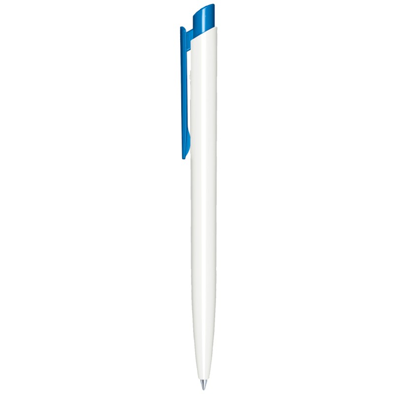 Stylo à bille rétractable avec corps en plastique blanc et clip de couleur.
