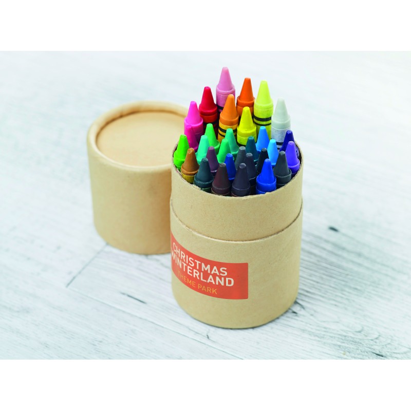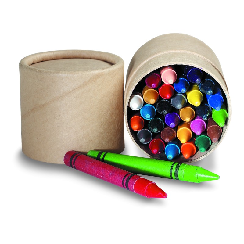 30 crayons de cire dans un tube en papier recyclé.
