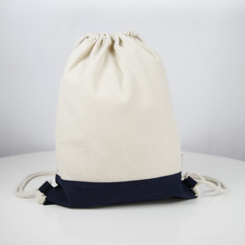 **Découvrez notre sac à dos coton bicolore 230 gr/m²**! Avec sa base bleue marine ou noire contrastant avec la couleur naturelle écrue, ce sac à dos avec son étiquette extérieur "recycled coton" est la combinaison parfaite d'élégance et de durabilité. Idéal pour les cadeaux d'affaires ou événement sportif, ce sac personnalisable allie style et fonctionnalité. Choisissez dès maintenant la couleur de votre sac ainsi que vos options de marquage (numérique textile Quadri ou sérigraphie) et de livraison !