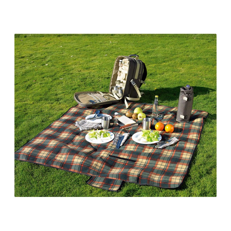 Sac (600D) de pique-nique pour 4 personnes. Inclus: Couverture, porte bouteille et accessoires de table de qualité.
