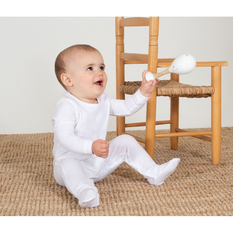 Pyjama manches longues. Manches raglan. Fermeture par pressions à l'entrejambe et sur l'épaule.
