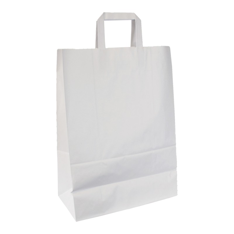 Sac avec anses plates en papier kraft blanc 90 gr/m2.