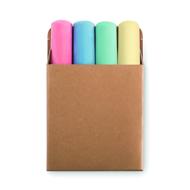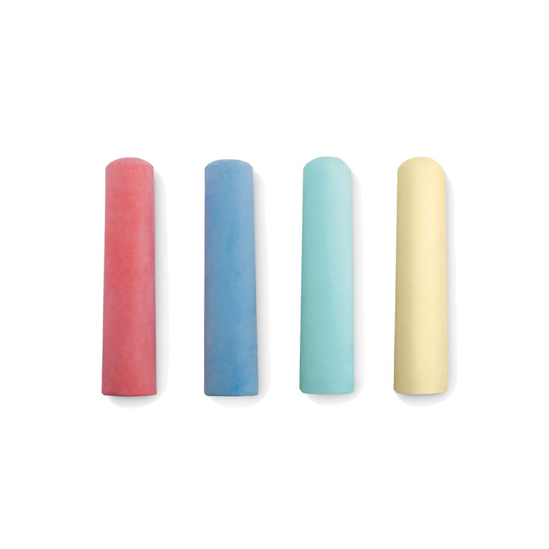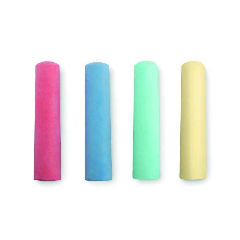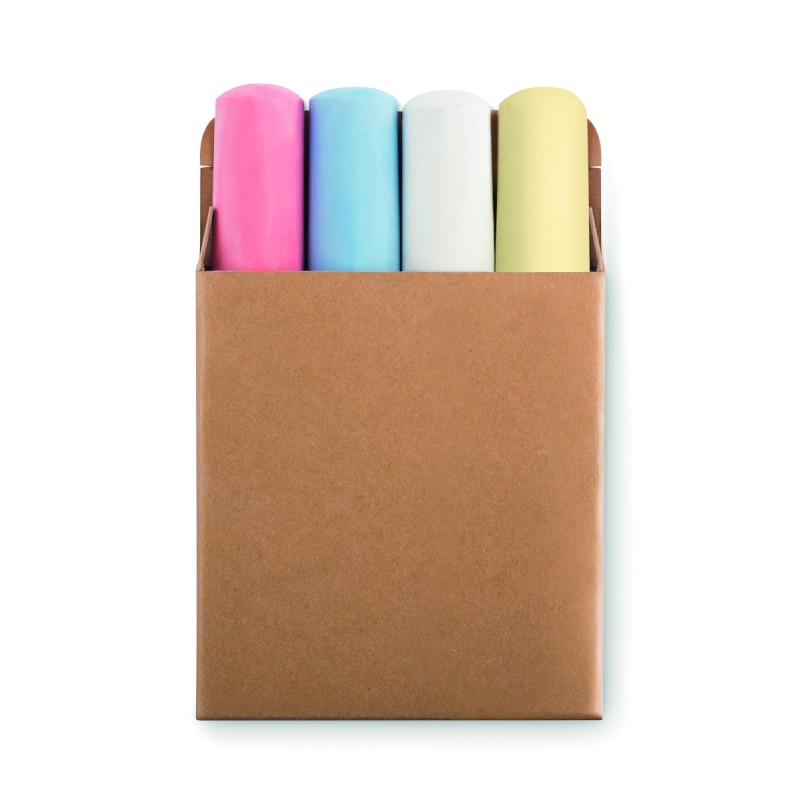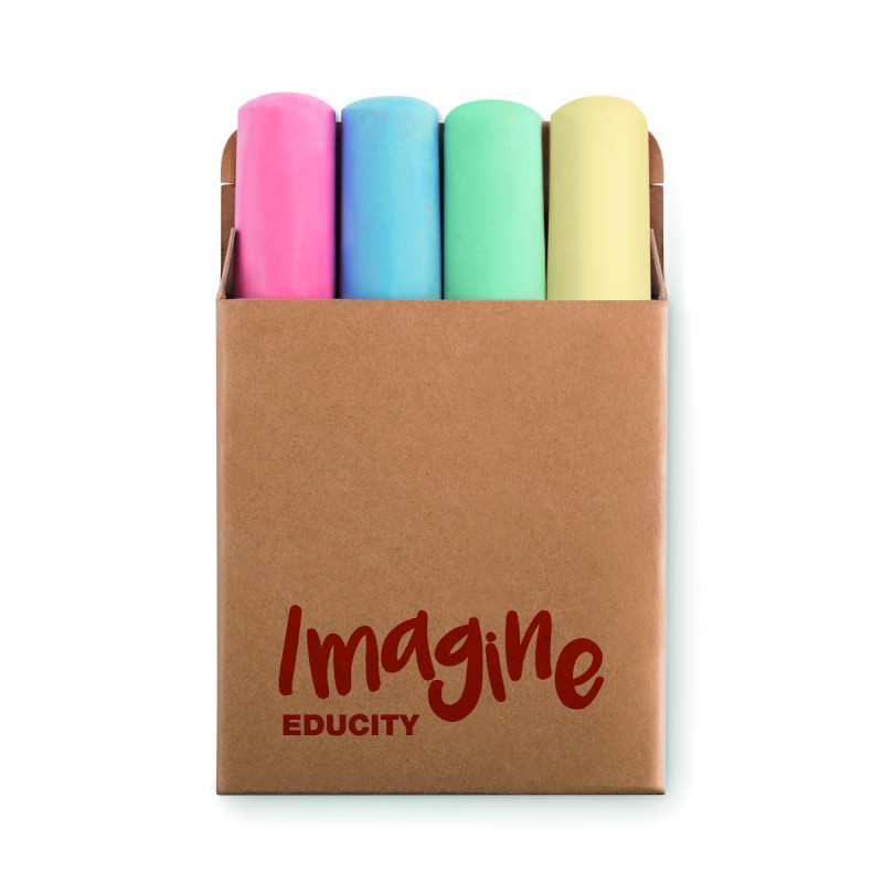 4 grandes craies de couleur dans un étui en papier recyclé. Diamètre 25mm.