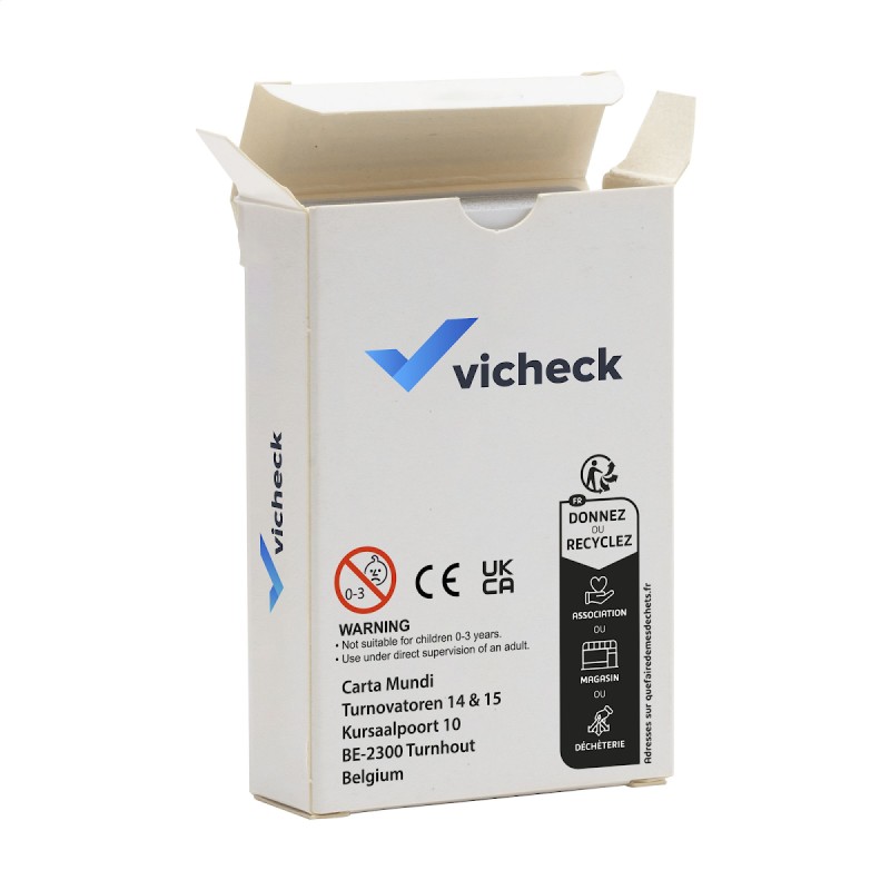 Jeu de cartes Assano avec 55 cartes à jouer ludiques et colorées en carton robuste de 300 grammes. Soyez la première personne à vous débarrasser de toutes vos cartes en faisant correspondre la couleur, le numéro ou le symbole avec la carte du dessus de la pile de défausse. Un jeu pour petits et grands. Emballé dans une boîte en carton et cellophane. Vous pouvez ajouter votre design en couleur au dos des cartes ainsi que sur la boîte, créant ainsi un jeu unique et personnalisé pour promouvoir votre marque. Règles du jeu incluses.