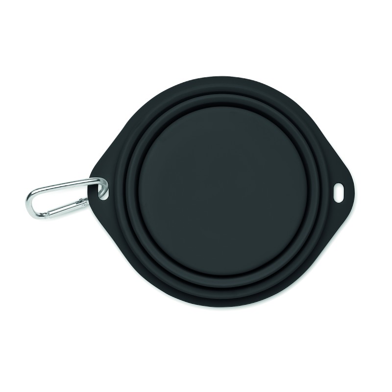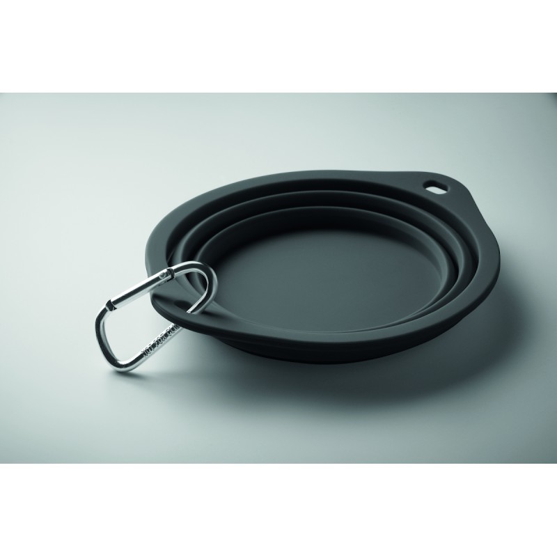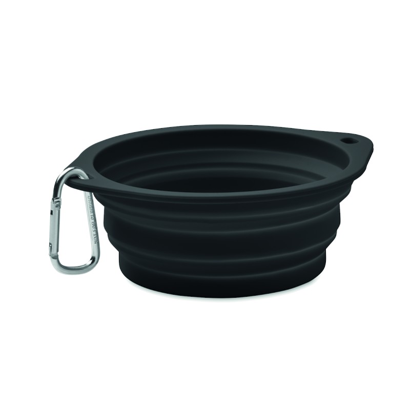 Gamelle portable pliable en silicone pour animaux de compagnie, avec mousqueton. Capacité : 350 ml. Le mousqueton n'est pas destiné à l'escalade (usage non professionnel).