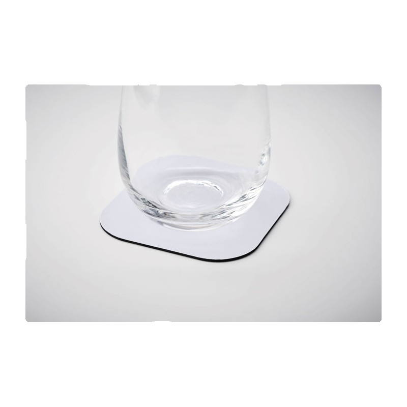 Sous-verre à sublimation en polyester avec base en caoutchouc noir.