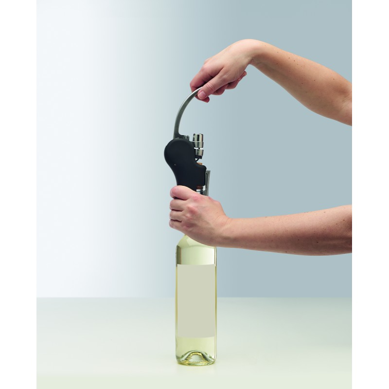 Tire-bouchon automatique à levier manuel en ABS et finition caoutchoutée.
