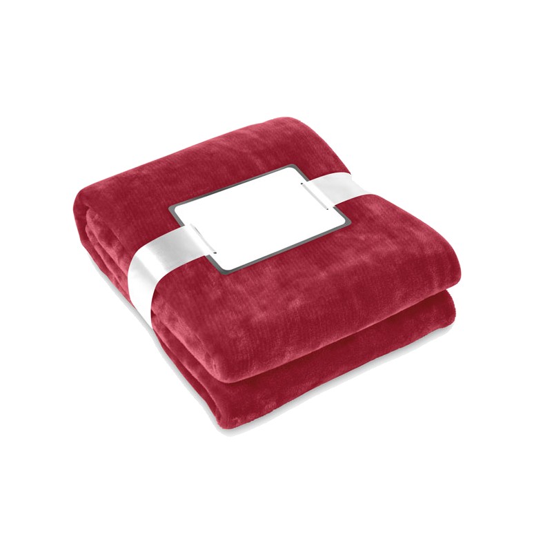 Couverture en polaire 280 gr/m² enveloppée dans un ruban et carte imprimable.