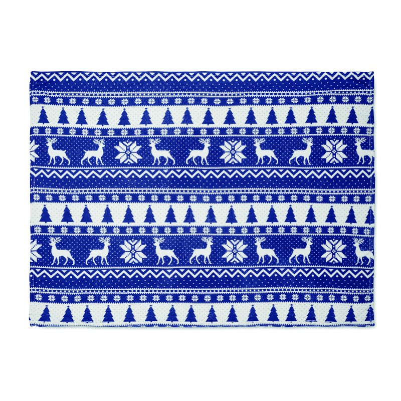 Couverture en polaire corail RPET 190 gr/m² avec motif hivernal. Enveloppée d'un ruban et d'une carte imprimable.