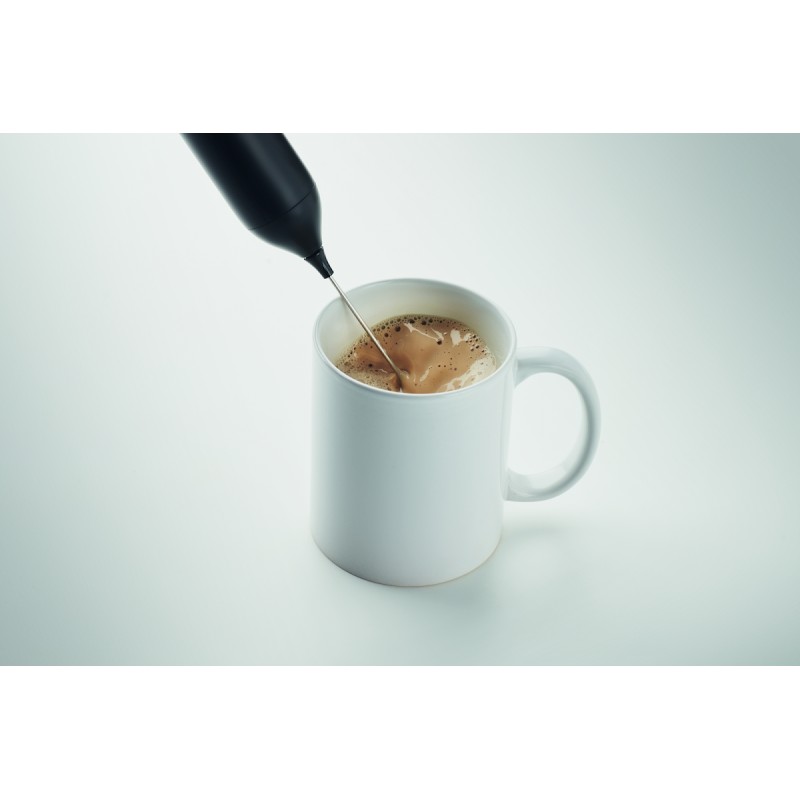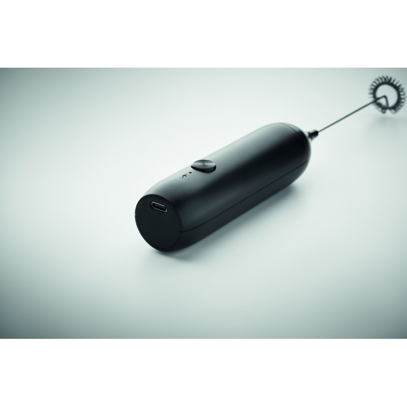 Mousseur à lait électrique manuel en ABS avec finition mate. Batterie intégrée d'une capacité de 500 mAh. Rechargeable par USB Type-C (câble inclus). Vitesse de rotation : 10 000 tr/min.