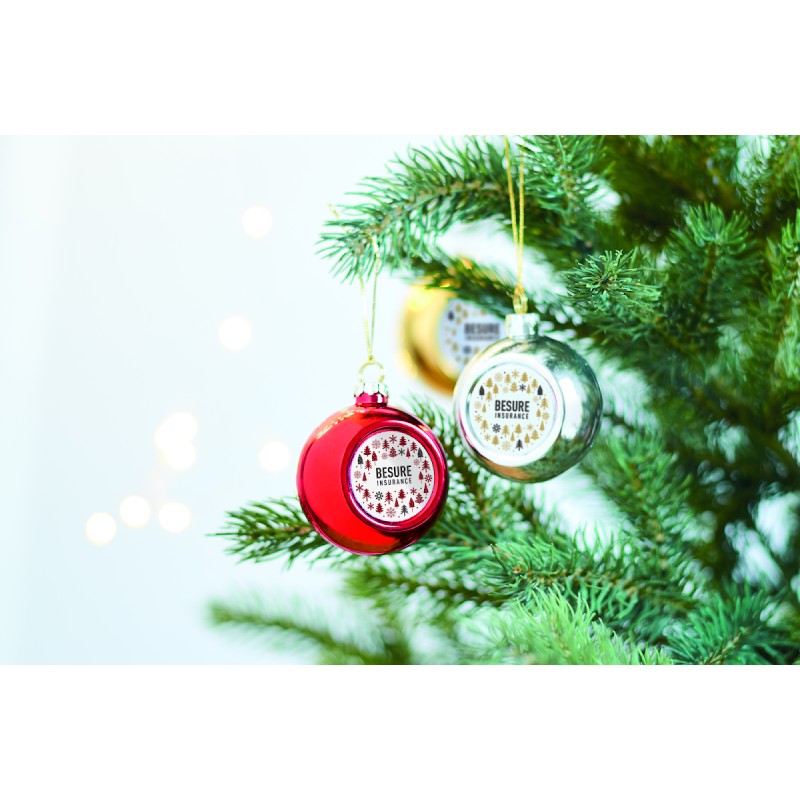 Boule de Noël en PP brillant, comprenant plaque pour impression par sublimation. Diamètre 6 cm.