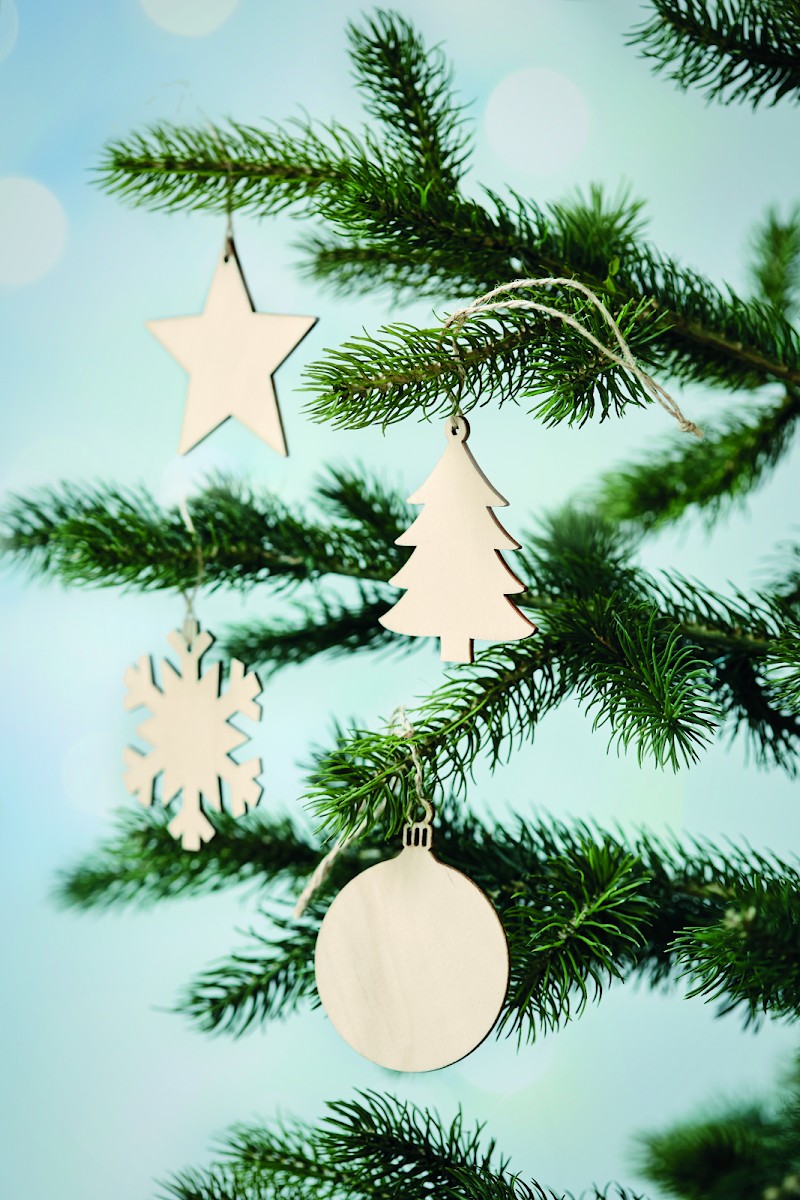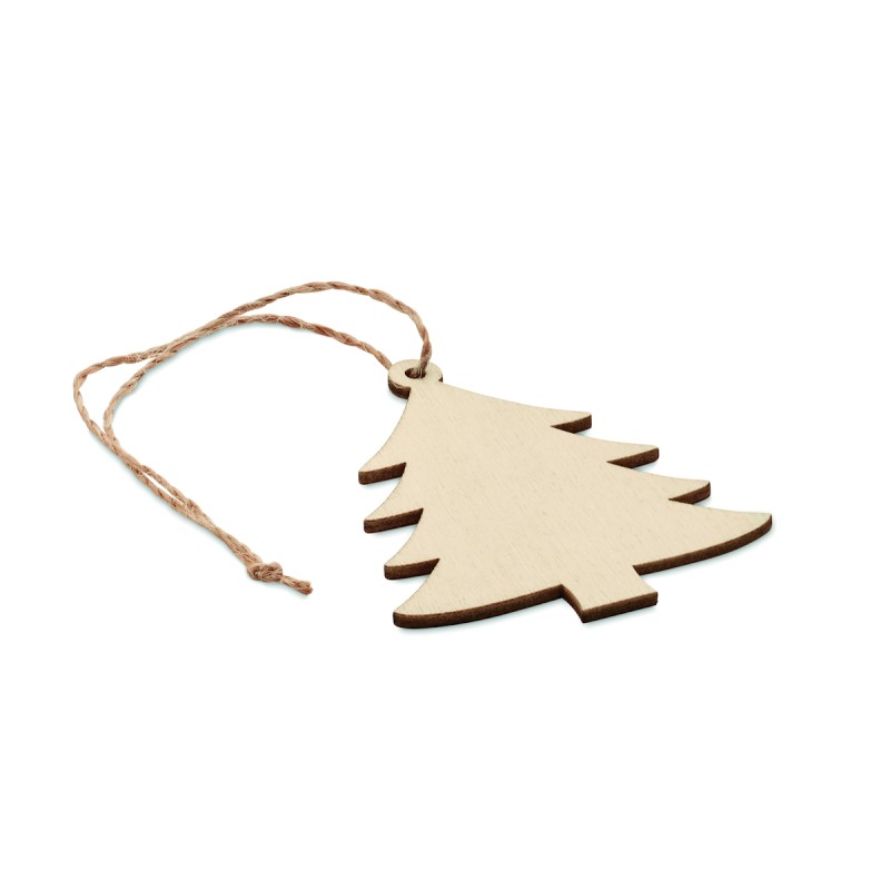 Décoration en bois forme sapin avec cordon en jute. Le MDF est un produit naturel, il peut y avoir de légères variations de couleur et de taille par article, pouvant altérer le résultat final.