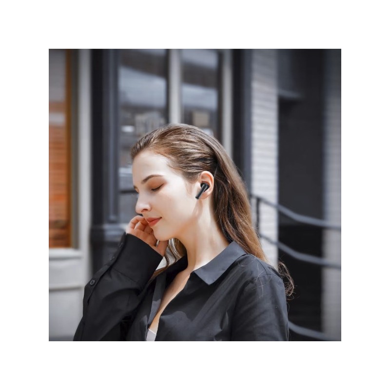 Écouteurs semi intra-auriculaires sans fil Bluetooth 5.4 + micro - Avec un boitier de rechargement de 300 mAh (5 charges) - 30 heures d'autonomie avec le boitier et 5 à 6 heures d'autonomie en écoute - Facile à connecter - Touche tactile multifonction - Compatible tous smartphones et tablettes Bluetooth (iOS & android) - En plastique recyclé RABS CERTIFIÉ GRS - GLOBAL RECYCLED STANDARD.