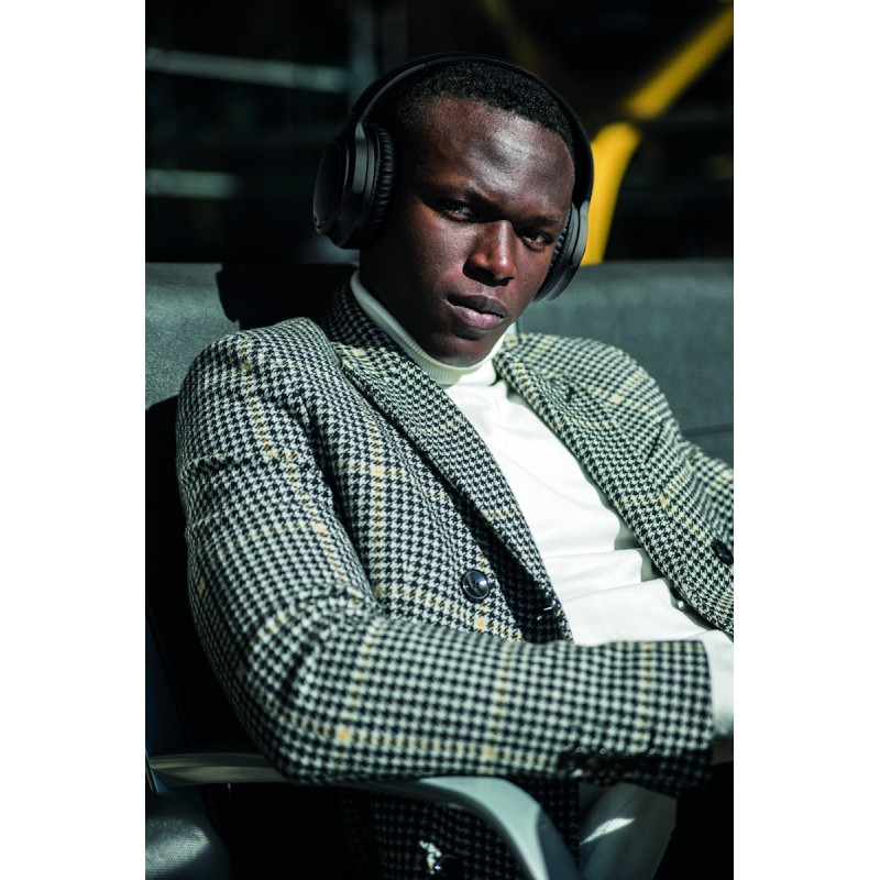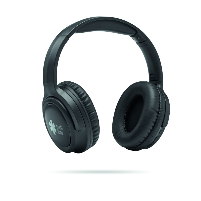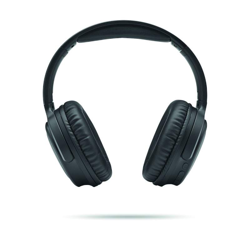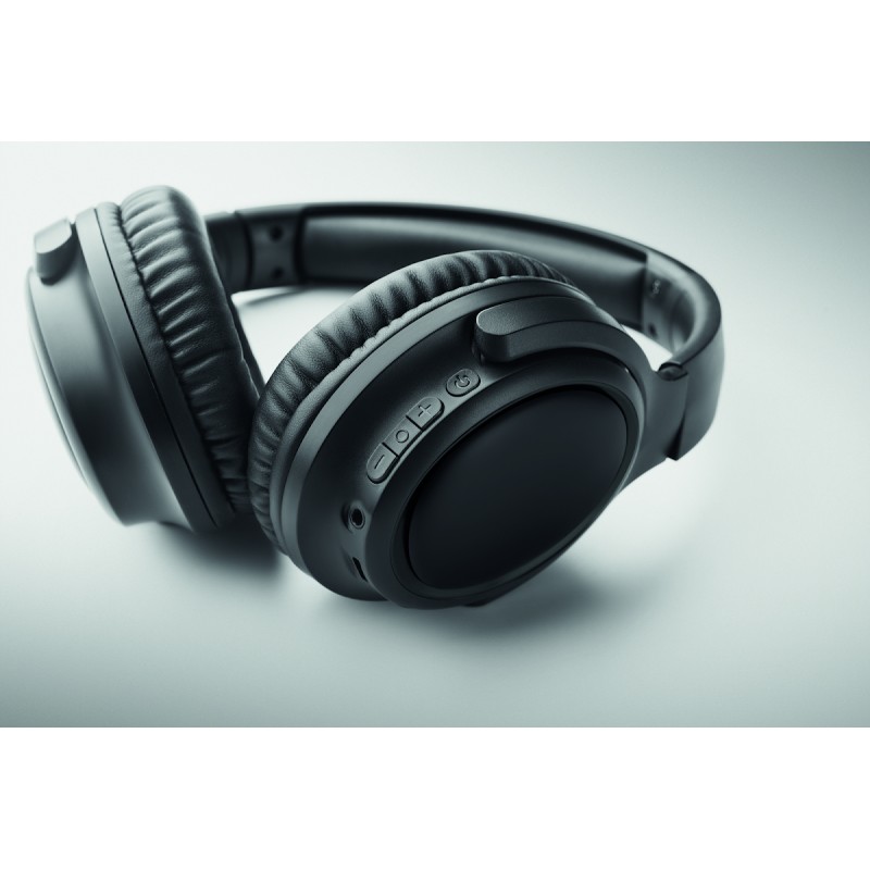 Casque sans fil pliable en ABS à réduction active du bruit (ANC) 5.3. Fonction mains libres et microphone. Autonomie d'env 17 heures. Câble de chargement Type-C inclus. Batterie Li-ION rechargeable de 200 mAh. Portée : 10 m.