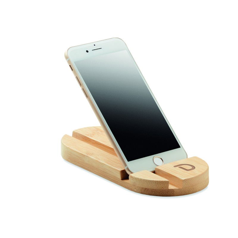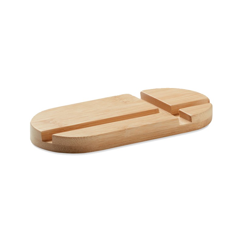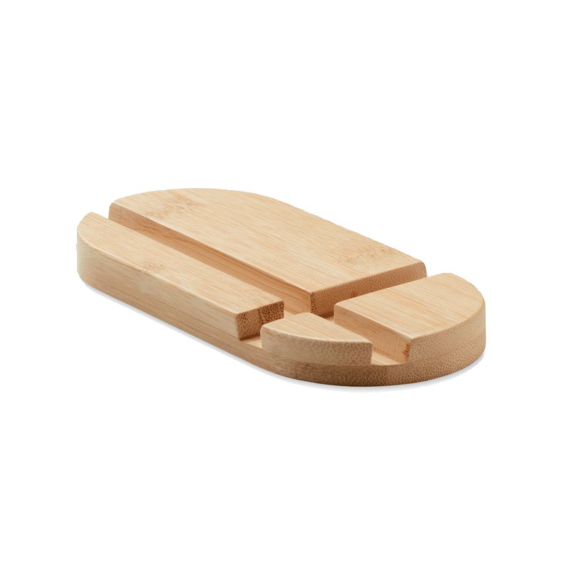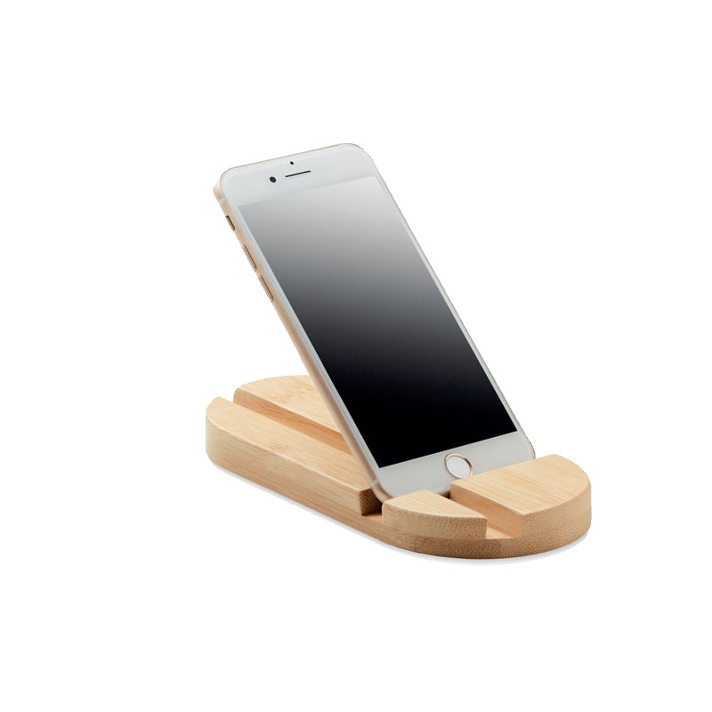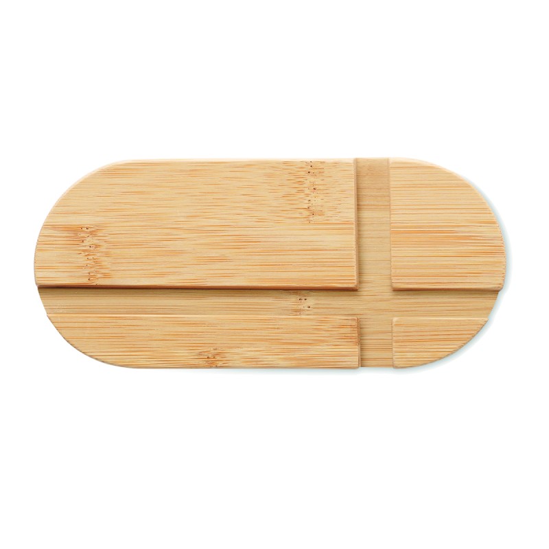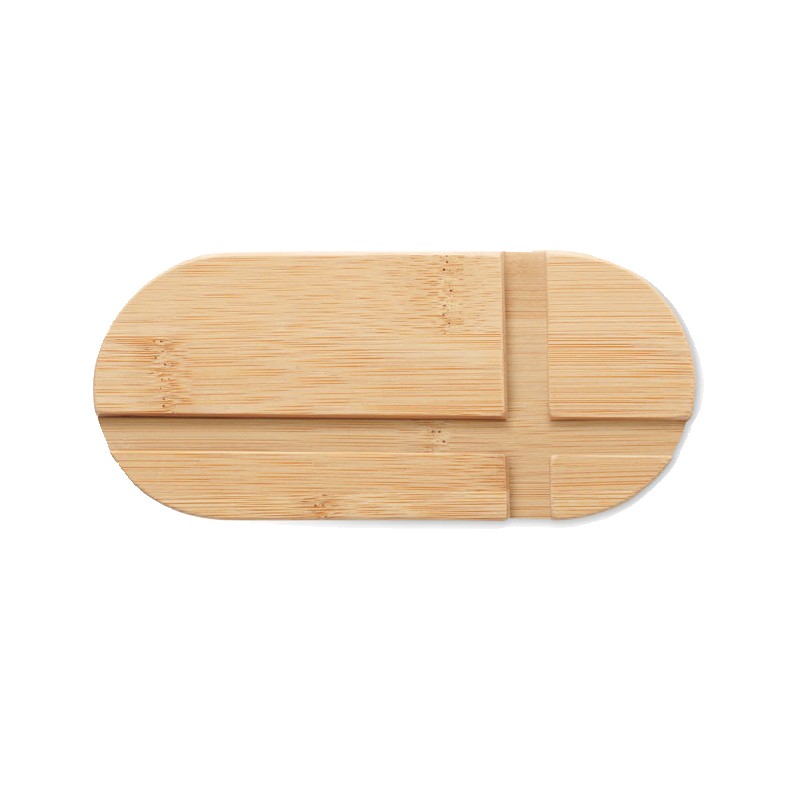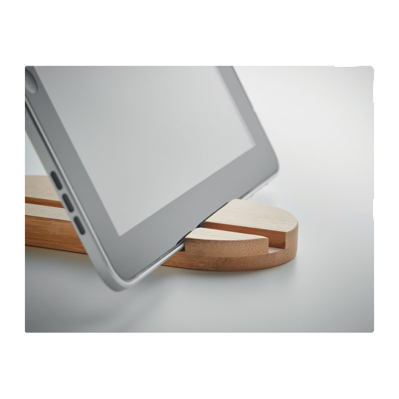 Support en bambou pour tablette ou smartphone. Ce support de téléphone naturel peut maintenir en place les smartphones ou les tablettes. Idéal si vous voulez regarder un film ou lire quelque chose sans avoir à tenir l'appareil. Le bambou est un produit naturel, et présente de légères variations de couleur, de décoration et de tailles. FSC®-certified | FSC 100%, N5.7, FSC-C213206