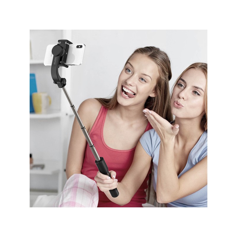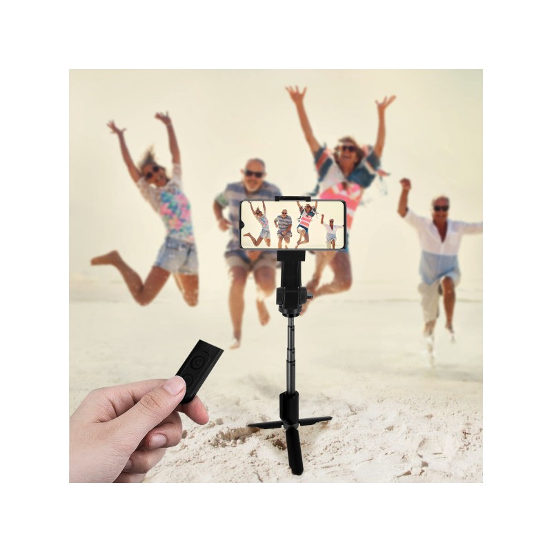 Perche selfie Bluetooth 3 en 1 avec stabilisateur intégré, télécommande incluse (rotation et prise photo) et trépied intégré