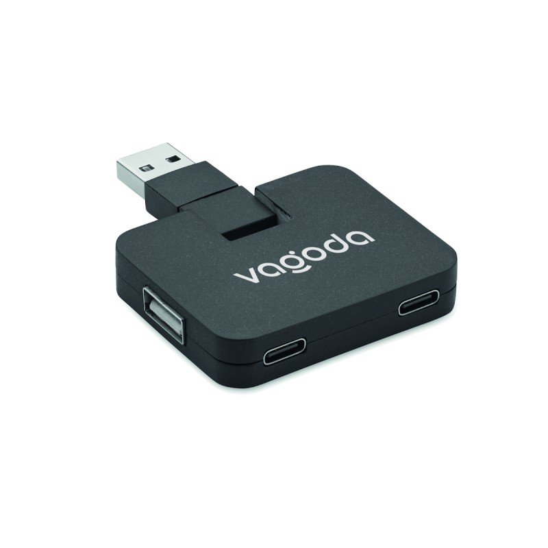 HUB 4 ports USB 2.0 en ABS. Sortie : 2 x Type-A et 2 x Type-C. Entrée : Type-C et Type-A.