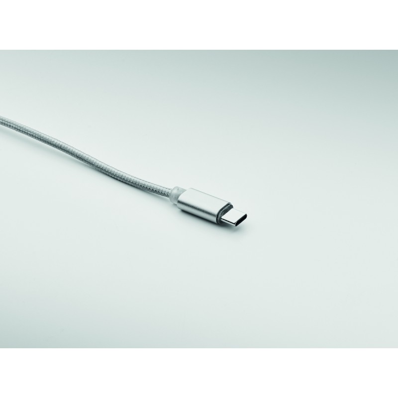Câble de recharge en aluminium avec entrée : 2-en-1 type-C & type-A et micro-B (2 en 1 pin), sortie type C et micro B. Longueur du câble : 120 cm.