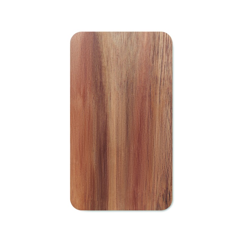 Chargeur sans fil 15W et Powerbank 4000mAh avec boîtier en bois d'acacia et PU recyclé. Prend en charge la technologie de charge rapide (20 W). Entrée/sortie : Type-C.