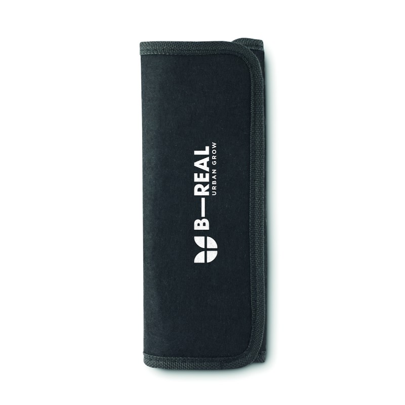 Set de 3 outils de jardinage. Griffe, pelle et transplantoir. Présentés dans une pochette en feutre RPET.