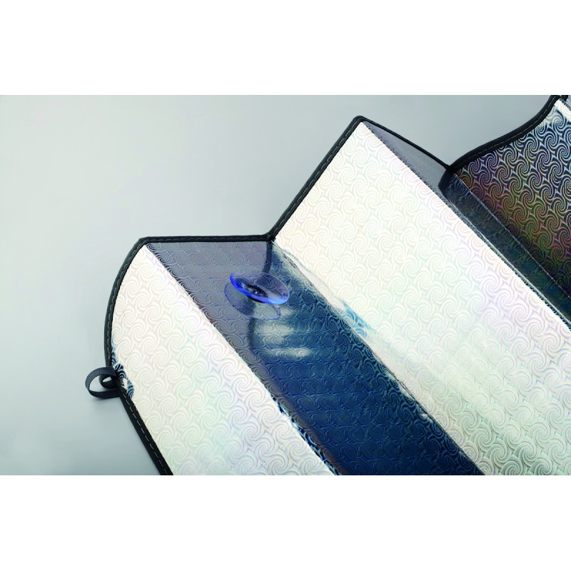 Pare-soleil pliable. Mousse intérieure de 2 mm et feuille d'aluminium PE intérieure.