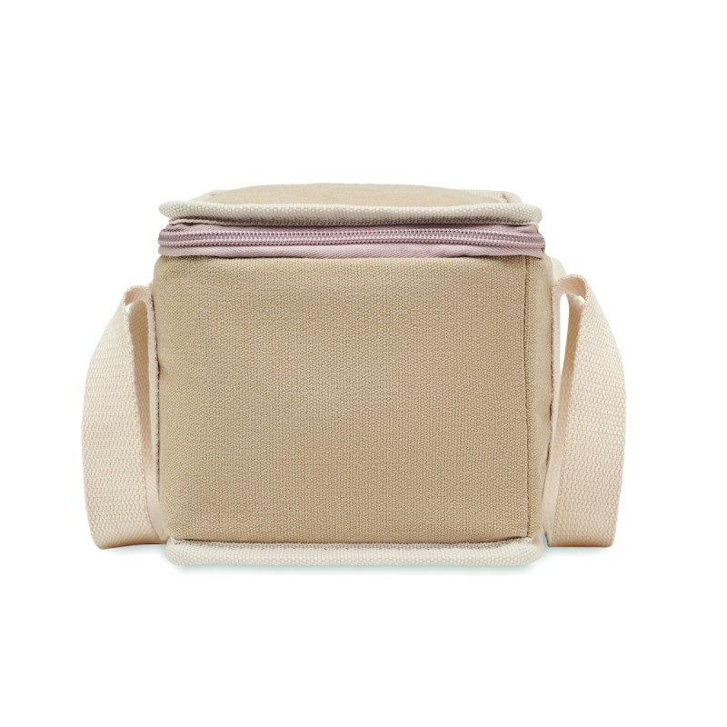 Sac isotherme 6 canettes en toile lavée avec sangle en coton. 320 gr/m². Isolation : 15C PEVA avec 6mm de mousse PE.
