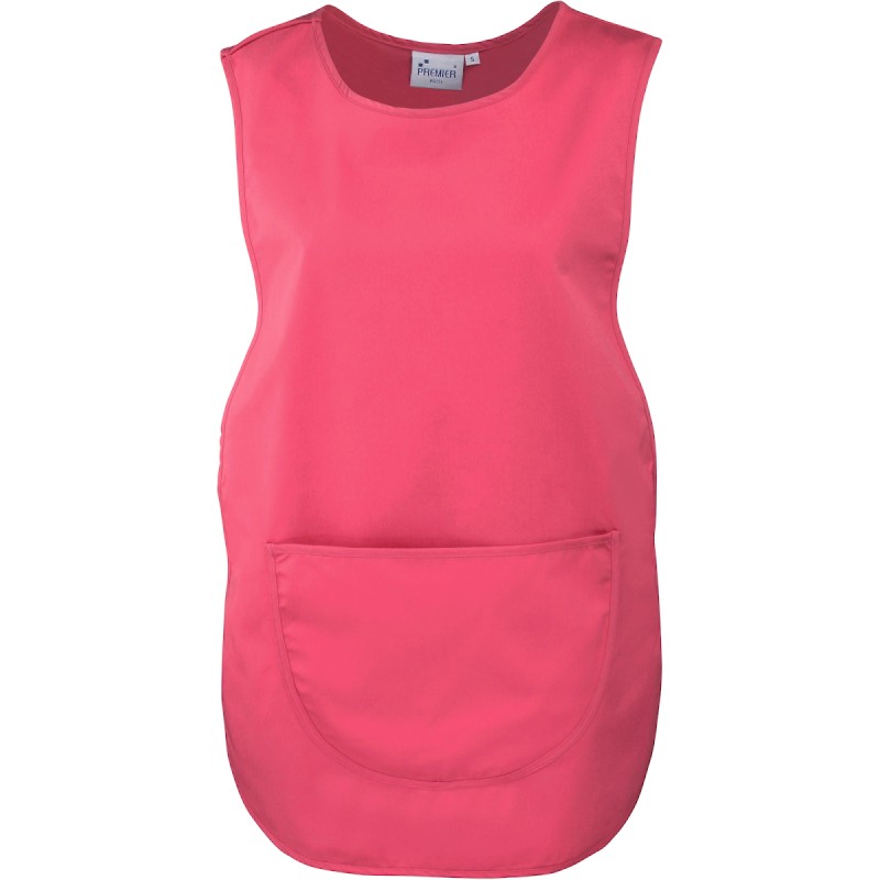 65% polyester / 35% coton sergé. Grande poche ventrale. Attaches latérales réglables par pressions. Finition anti-froissement. Longueur: 68 cm. Lavage industriel à 85° et domestique à 60°.