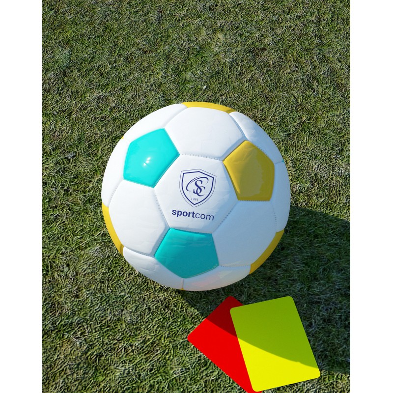 Ballon de football 100% personnalisé idéal pour la promotion et la communication. Taille 5 officielle. Diamètre : 21-23cm. Circonférence : 69 à 71cm. Poids : 360g. Ballon cousu machine en 30 ou 32 panneaux. Matière PVC Brillant 1.8mm. Vessie en latex. Personnalisation intégrale en sérigraphie sur tous les panneaux (jusqu’à 6 couleurs maximum). Ballon livré non gonflé sous polybag individuel. Aiguille en option. Minimum de commande : 100 pcs