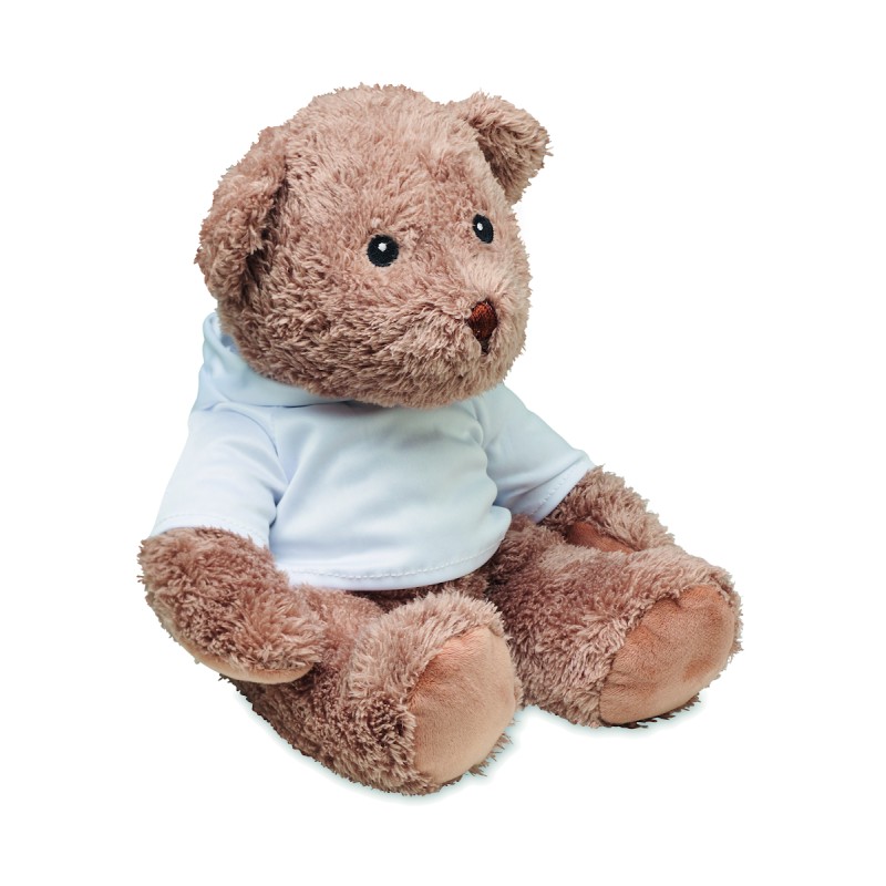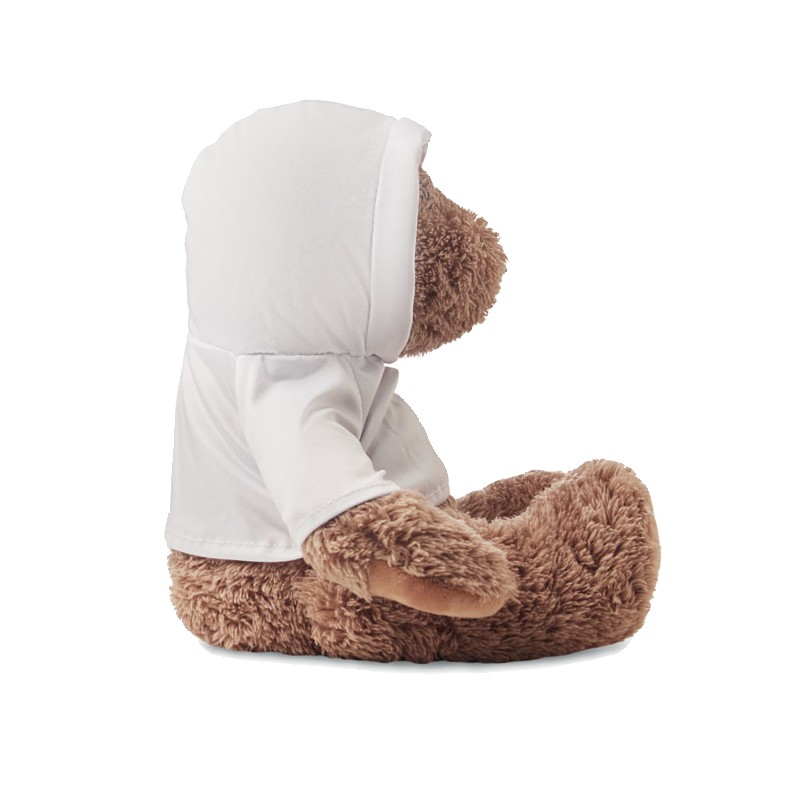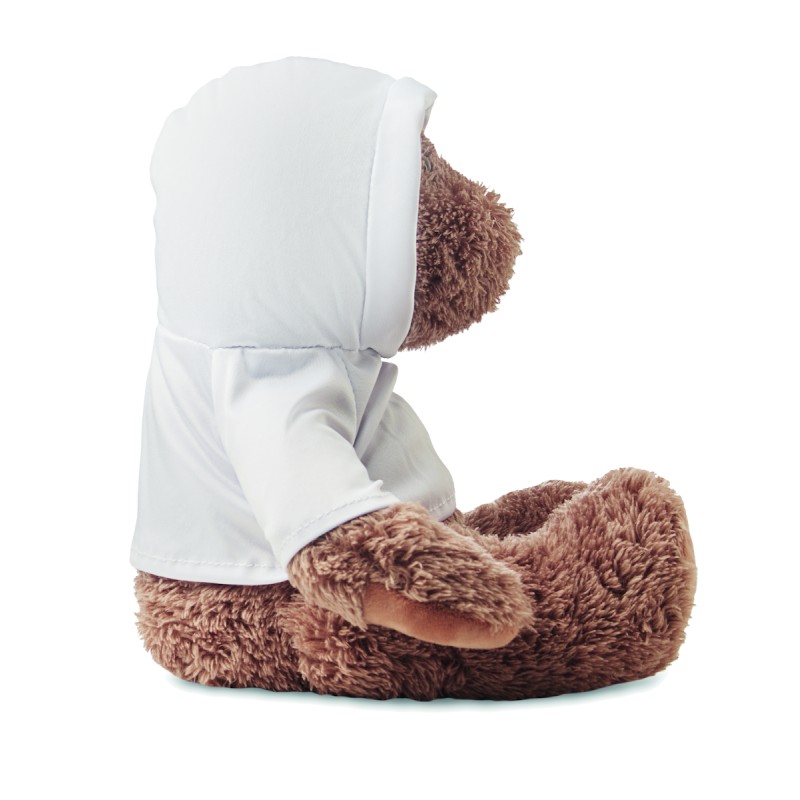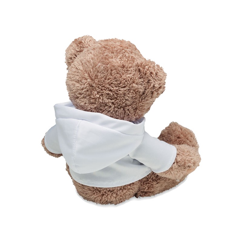Grand ours en peluche portant un pull à capuche. Idéal pour l'impression par sublimation.