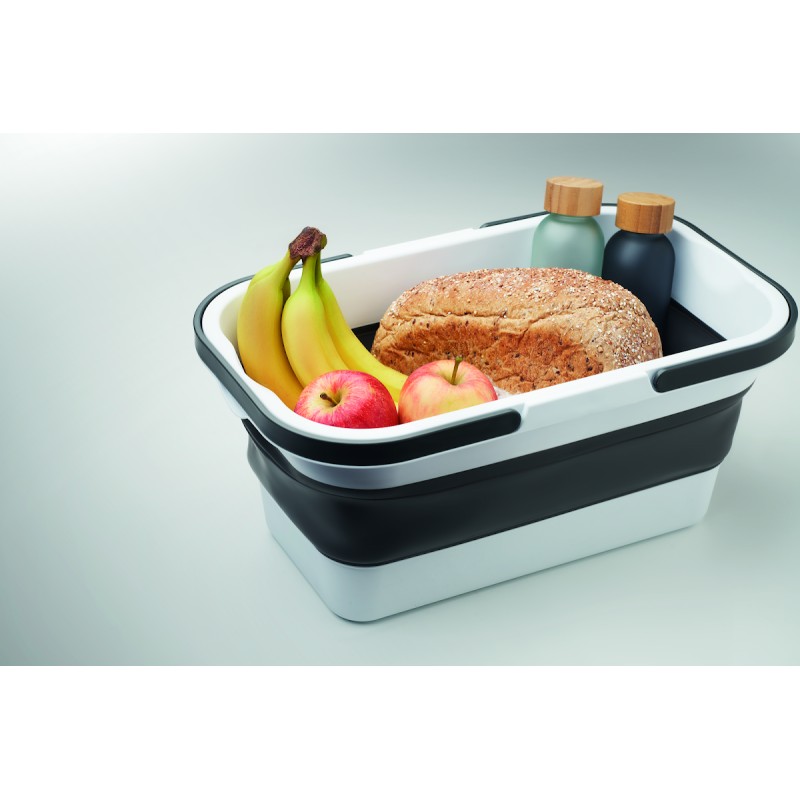 Panier de pique-nique pliable en silicone avec plateau en PP. Capacité : 16 L.