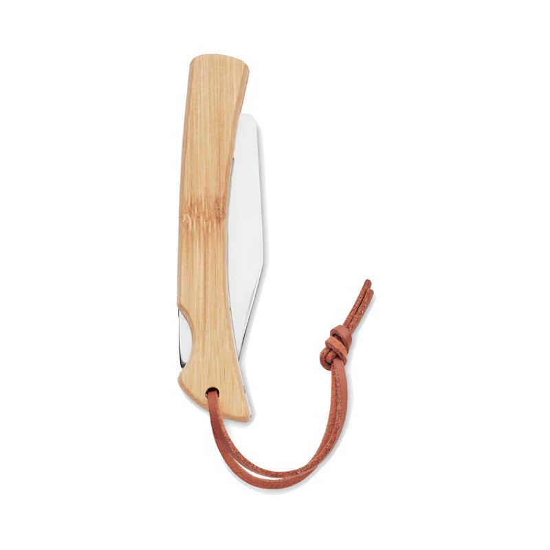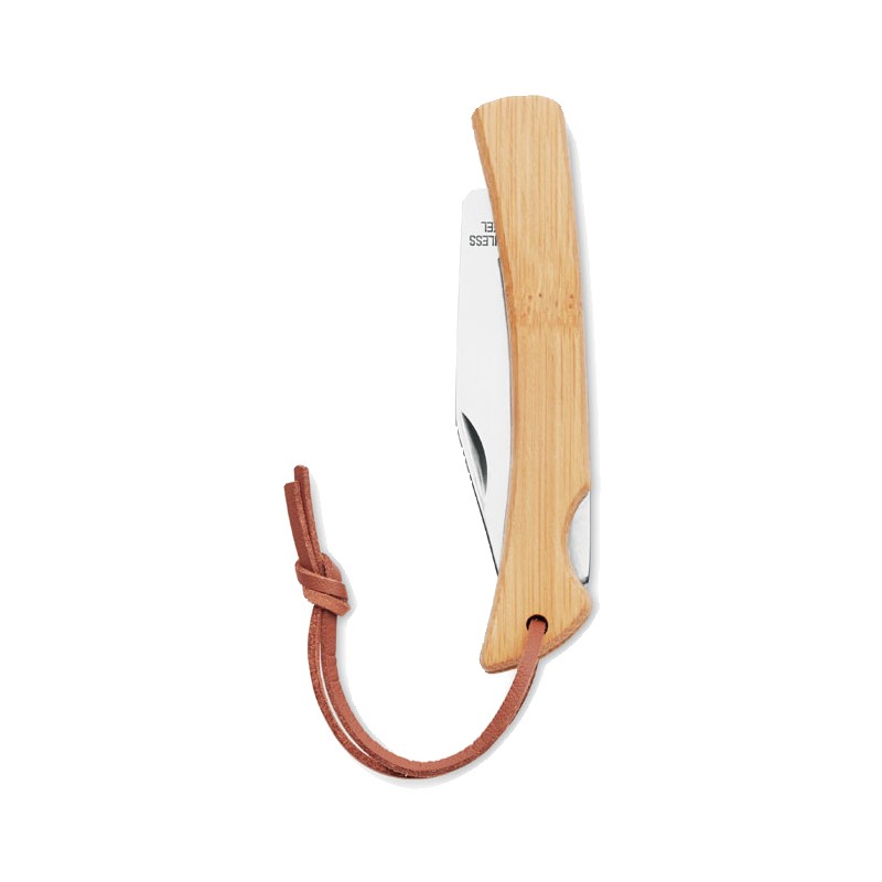 Couteau pliable en acier inoxydable 2CR13, manche en bambou et poignée en cordon PU. Idéal pour votre prochaine sortie camping grâce à sa forme compacte. Vous pouvez le suspendre grâce au cordon PU. Le bambou apporte au couteau un aspect naturel. En tant que matériau naturel, il peut présenter de légères variations de couleur et de dimensions selon les articles, susceptibles d’influencer le résultat final de la personnalisation.