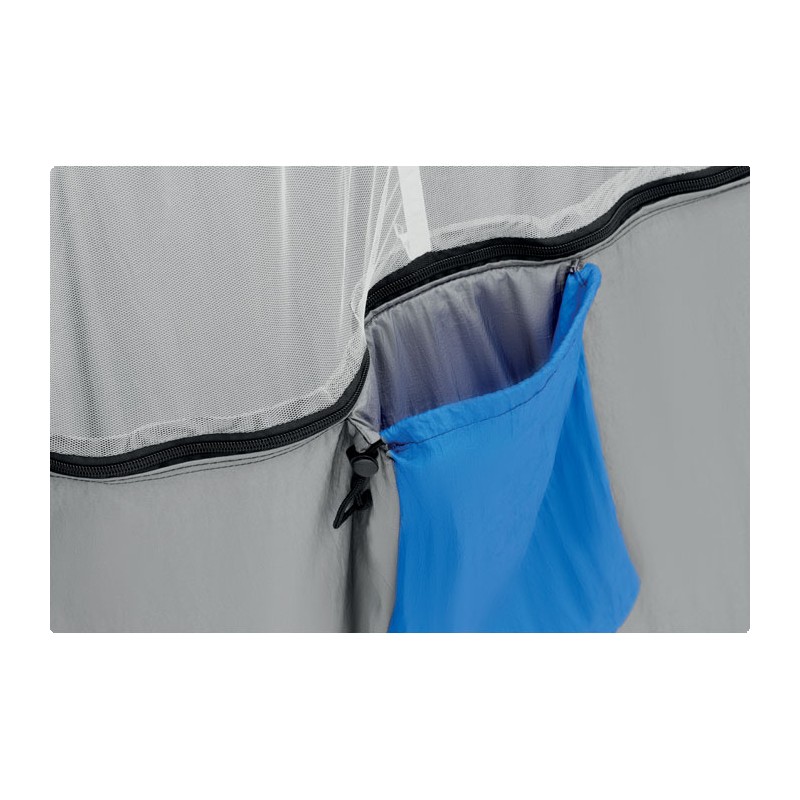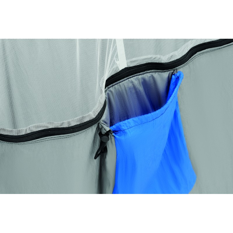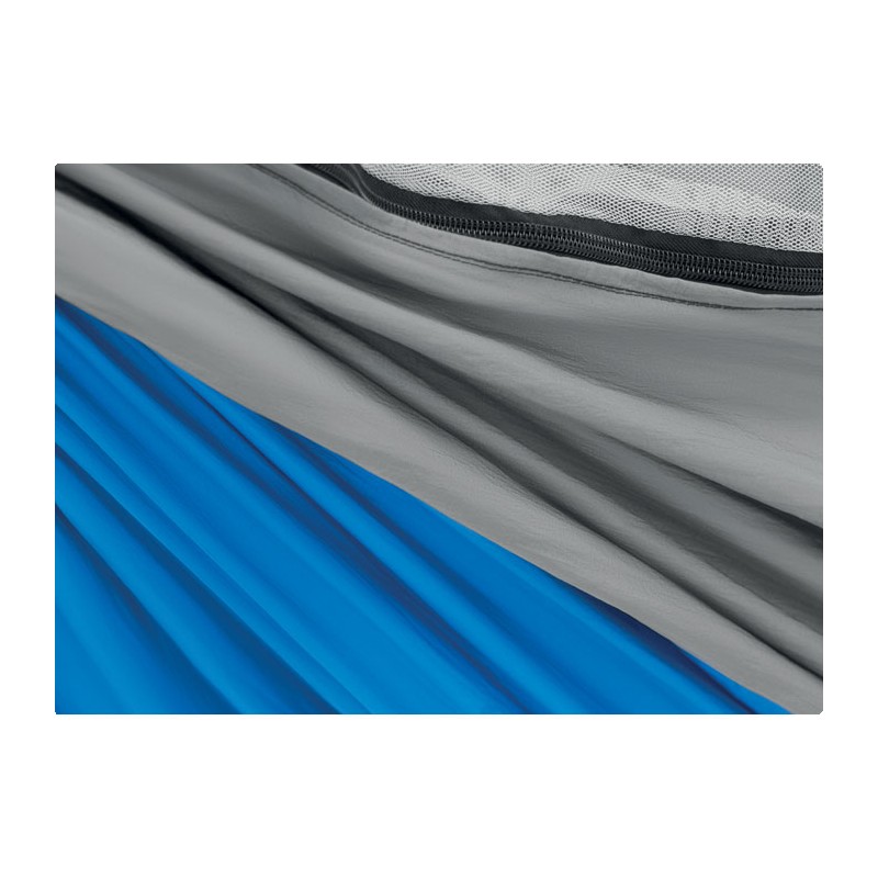 Hamac avec moustiquaire intégrée. Fabriqué en nylon léger et résistant. Pour une installation facile, la sangle et les mousquetons sont inclus. Ce hamac peut supporter jusqu'à 200 kg.
